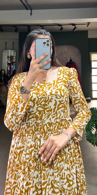Mustard Georgette Printed Gown