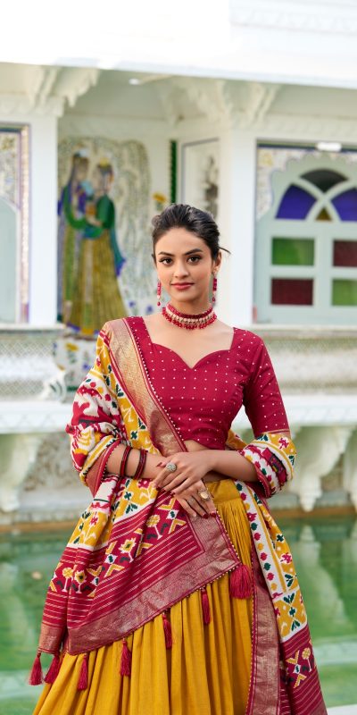 Mustard Tasar Silk Patola Print Gotta Patti Lehenga Choli