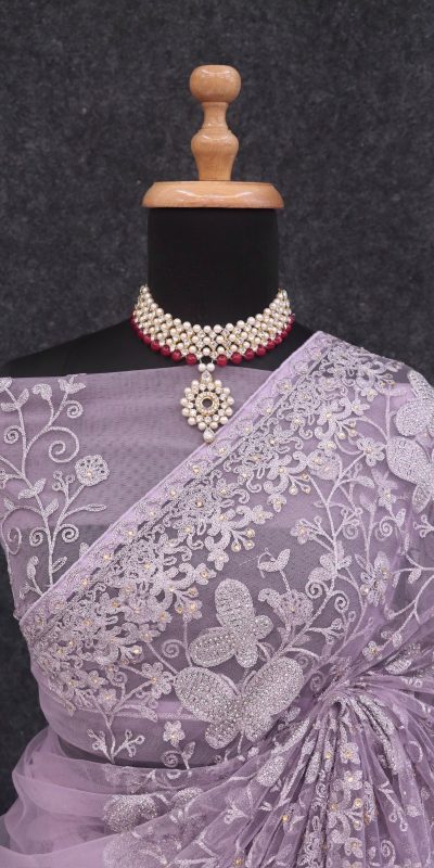 Mystical Light Purple Butterfly Net Embroidery Sequence Saree