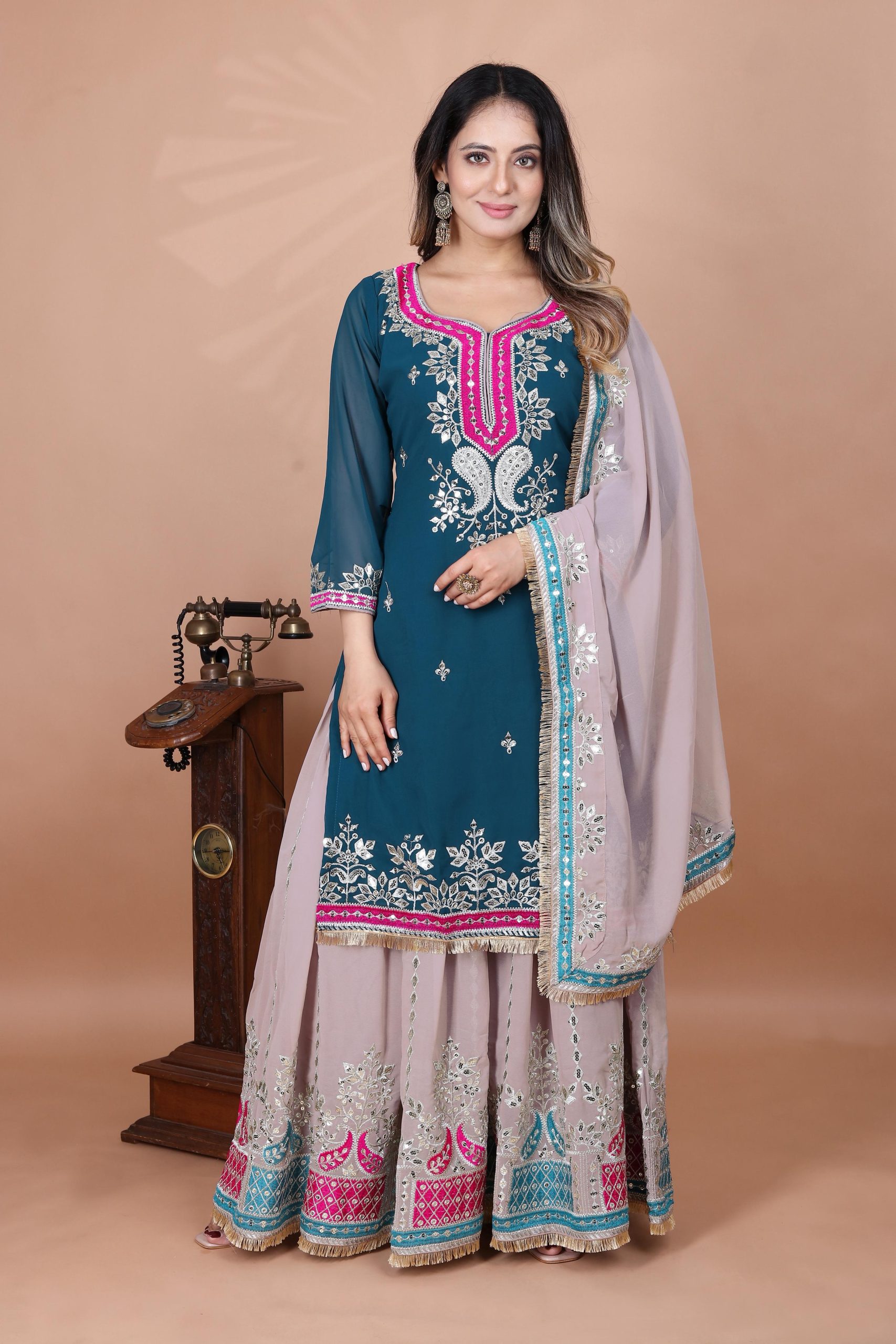 Sharara Fabrics :Heavy Faux Georgette With 5mm Embroidery Sequence Work