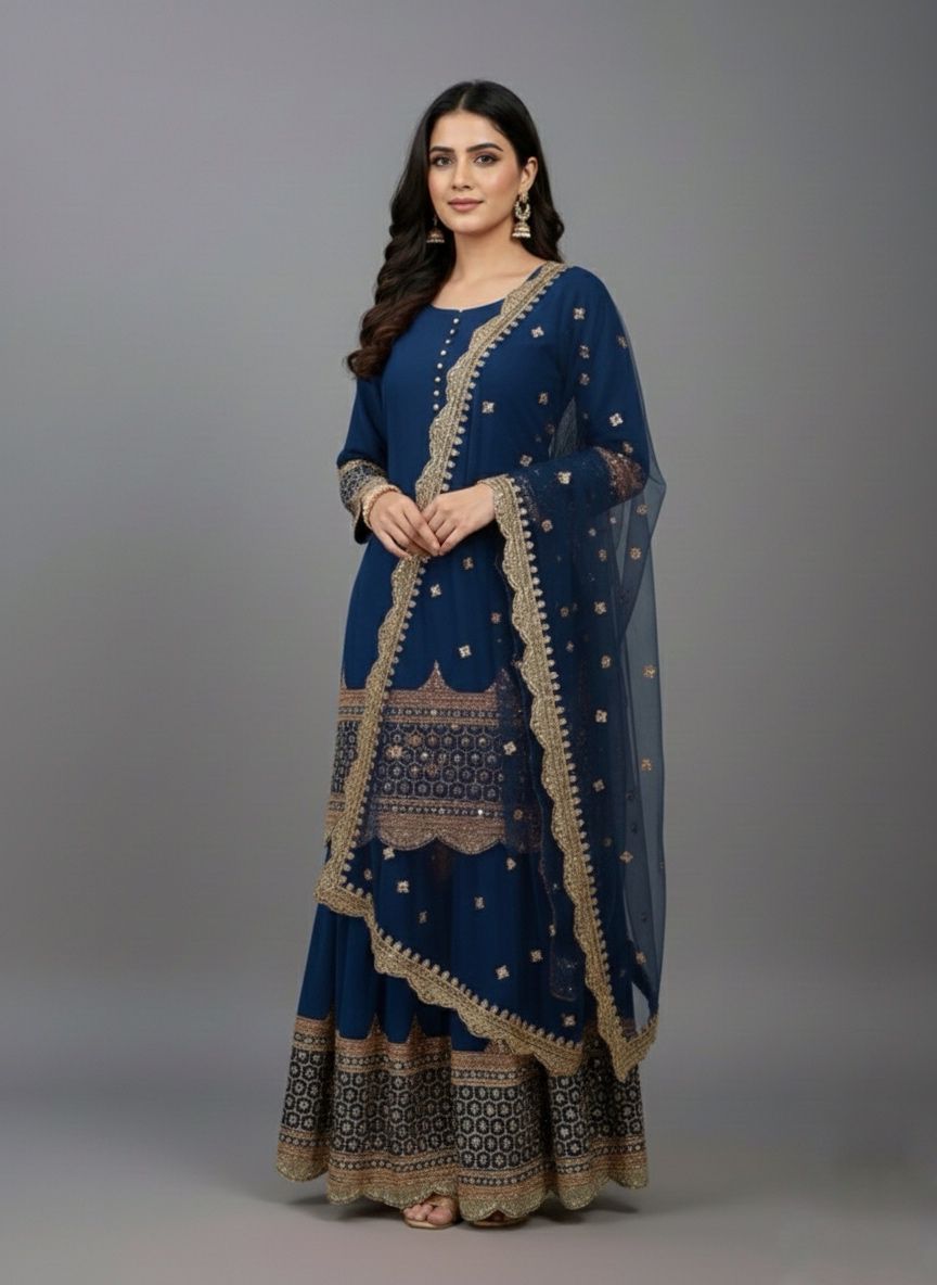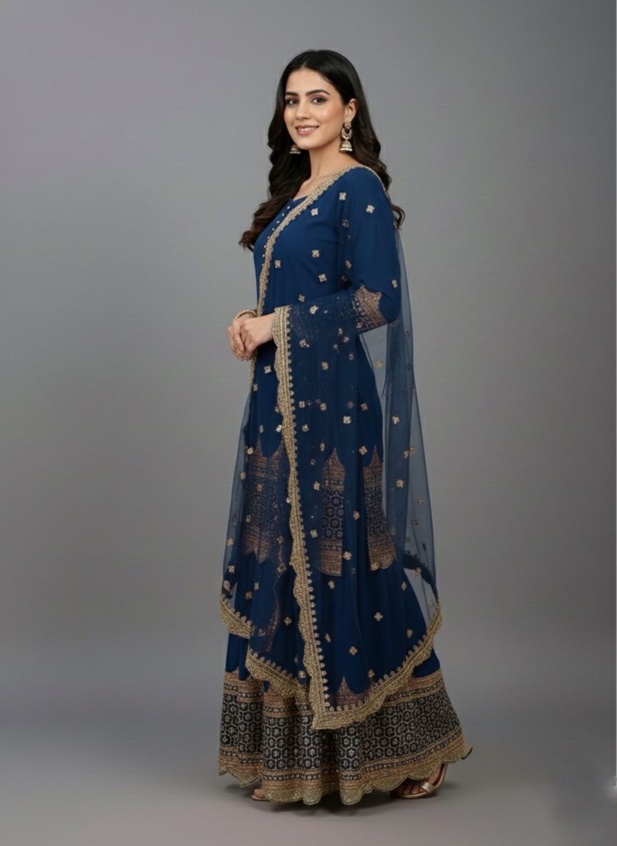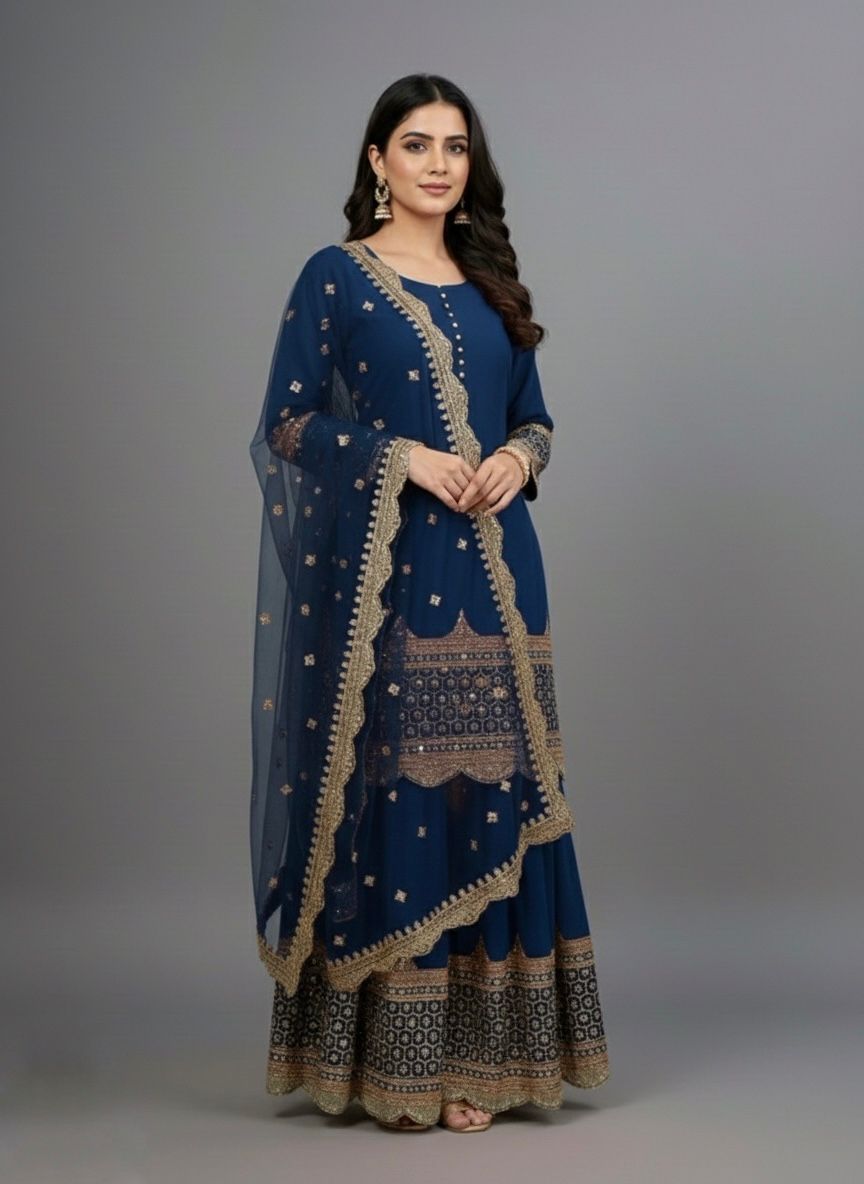 Navy Blue Faux Georgette Embroider Salwar Suit