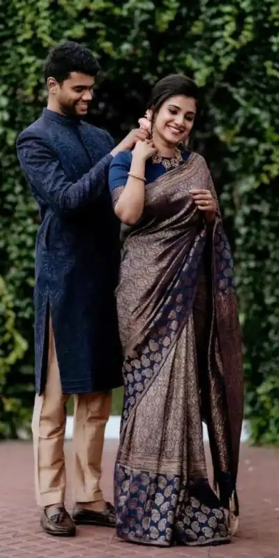 Navy Blue Lichi Silk Jacquard Lace Saree