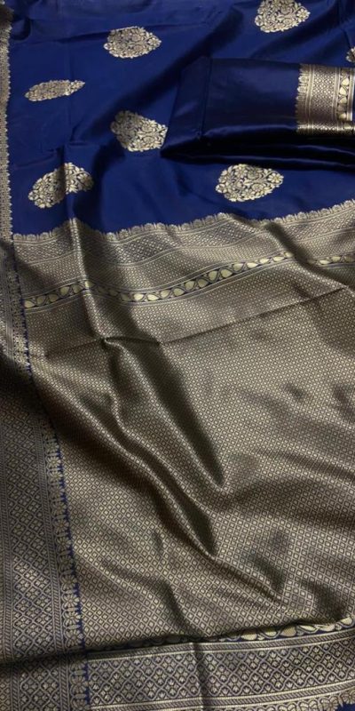 Navy Blue Lichi Silk Saree