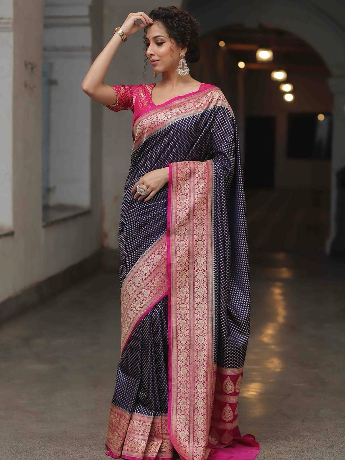 Navy Blue Soft Lichi Silk Jacquard Rich Pallu Saree