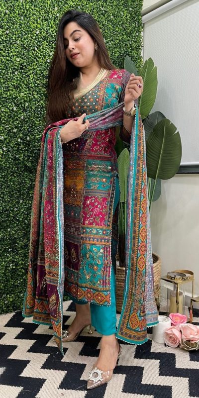 LG 1859 Blue color Maslin Printed Real Mirror Work Salwar Suit Casual, Wedding, Party, Festive, Events . Expected Delivery  4-6 Working Days @1899/-
