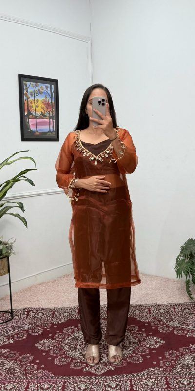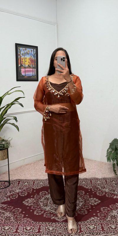 ST 1100 Brown Color Organza Mirror Lace Work Salwar Suit Casual, Wedding, Festive, Events . Expected Delivery 4-6 Working Days @1699/- only
