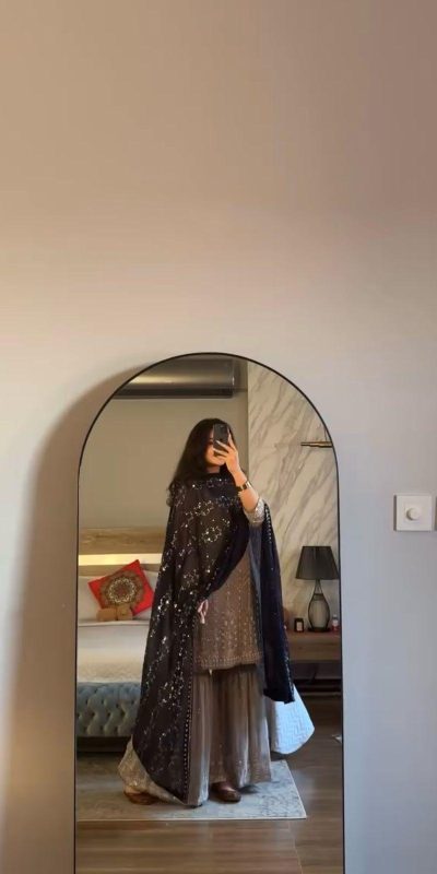 | Fabrics | Top Fabric : Heavy Faux Georgette With 5mm Embroidery Sequence Work With Beads Work With Full Sleeve Top Length :- 39-40 inch Top Inner : Heavy Micro Cotton Top Size. : Free Size Semi Stitched (FULLY STITCHED READY TO WEAR)Gharara Fabrics : Heavy Faux Georgette With 5mm Embroidery Sequence Work Pent inner : Heavy Micro Cotton Pent Length : 40-41 Inch fully stitched Dupatta Fabric : Heavy Faux Georgette With 5mm Embroidery Sequence Work |