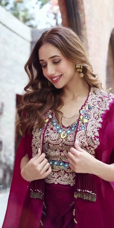 | Fabrics | Lehenga : Heavy Georgette Waist:- 42 Inch Length :- 40 Inch Blouse : Banglory Work:- Front Embroidered & Full Stitch Up To 42 Inch Shrug Details Fabric :- Heavy Georgette Length :- 52 Inch Work :- Side & Neck Embroidery Work / Full Stitch Free Size |