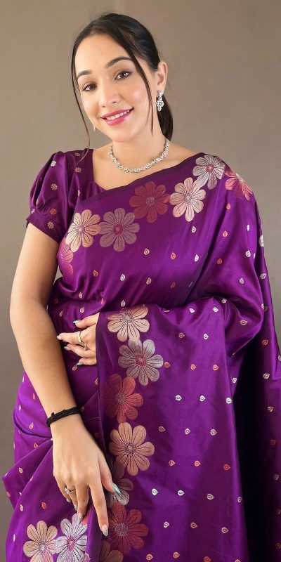 DDF 127 Purple Color Soft Lichi Silk Ordinary Design Rich Pallu Saree Casual, Party Wear, Events, Festivals Etc. Expected Delivery 4-6 Working Days 1499/-
