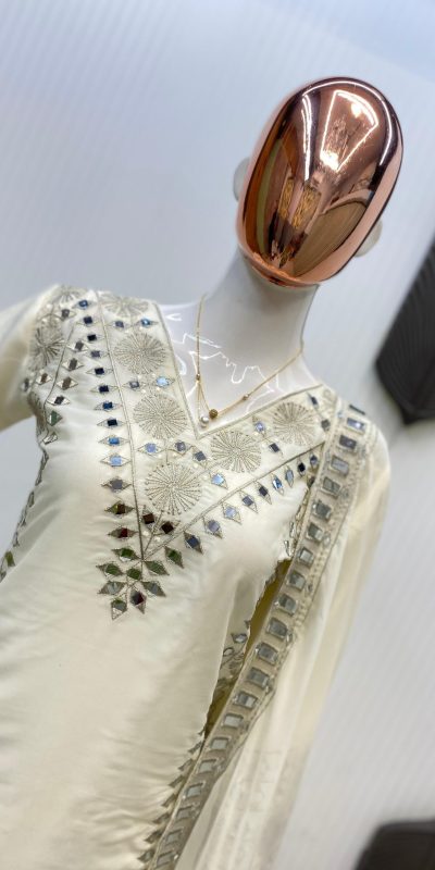 Off White Georgette Embroidery Mirror Work Salwar Suit