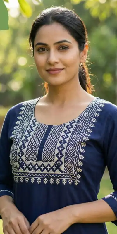 Kurti Work : With Embroidery thread Work Short length  for Pinter style look