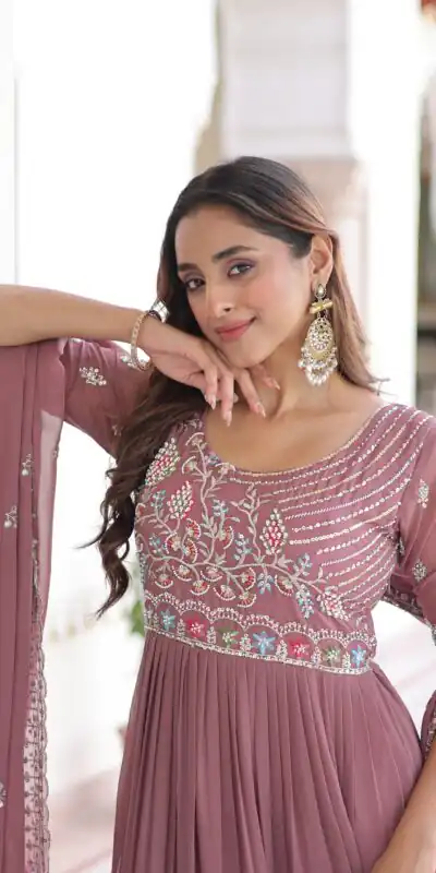 Onion Faux Blooming With Embroidery Work Gown