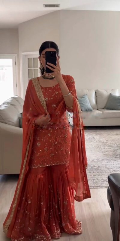 Top Fabric   : Heavy Faux Georgette With 5mm Embroidery Sequence Work With Full Sleeve