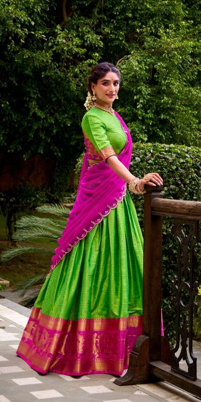 Parrot Green Poly Cotton Embroidery Zari Work Lehenga Choli