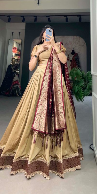 LNB2014 Chickoo Color Vichitra Silk Jacquard Lace Lehenga Choli Traditional, Festive, Party, Wedding, Events, etc. Expected Delivery 4-6 Working Days @1999/-