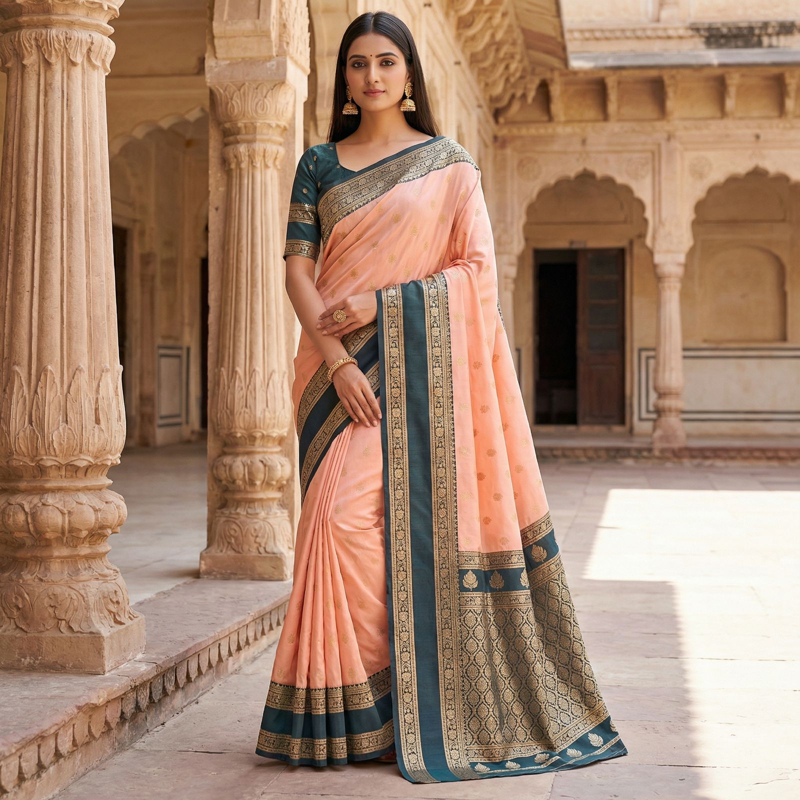 MB 3324 Peach in Color Banarasi Silk Zari Work & Lace Work Saree . Now at just ₹1949. Delivery 4-6 Working Days. Shop now. | Creative Sarees, Bollywood Sarees, Designer Sarees, Embroidered Sarees, Ethnic Saree, Modern Digital sarees, Party Wear Sarees, Sarees