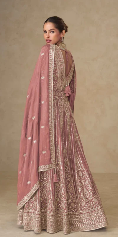 Peach Chinon Silk Embroidery Work Salwar Suit