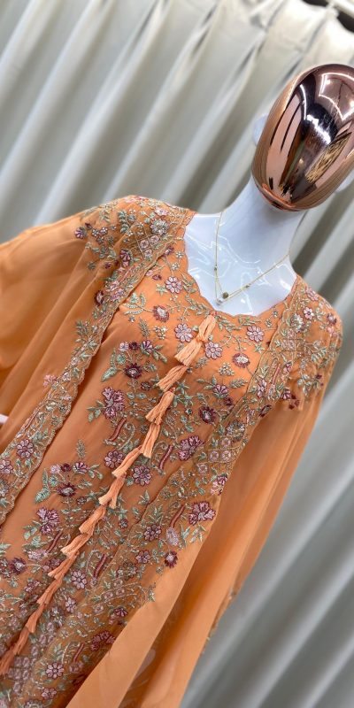 Peach Faux Georgette Embroidery Work Salwar Suit