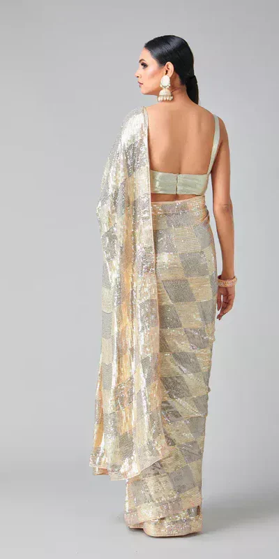 Dual Sequins Of 3mm & 5mm Sequins Work In Saree