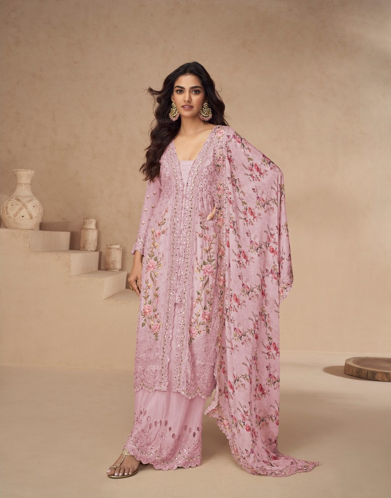 Top:- heavy Real Vichitra With Embroidery work sequence & Type Top – Stitch Size :-Free Size semi Stitched Sleeves :- heavy Real Vichitra Inner :- Santoon Palazzo :- heavy Real Vichitra With Embroidery work +sequence With Inner attached (Santoon) Sharara :- Stitched Dupatta :- heavy Real Vichitra Digital print With Embroidery work 4 Side Less |
