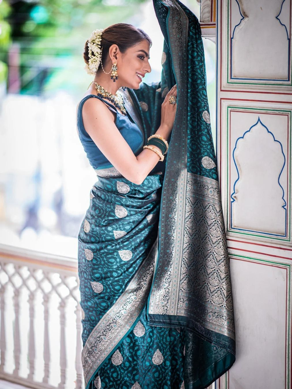 Loved the dual‑shade silk Indian saree, green se blue shift; evening lights me color play superb tha, sab ne pucha ye kahaan se li.