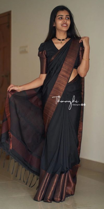 Perfect Black Color Soft Lichi Silk Jacquard All Over Saree