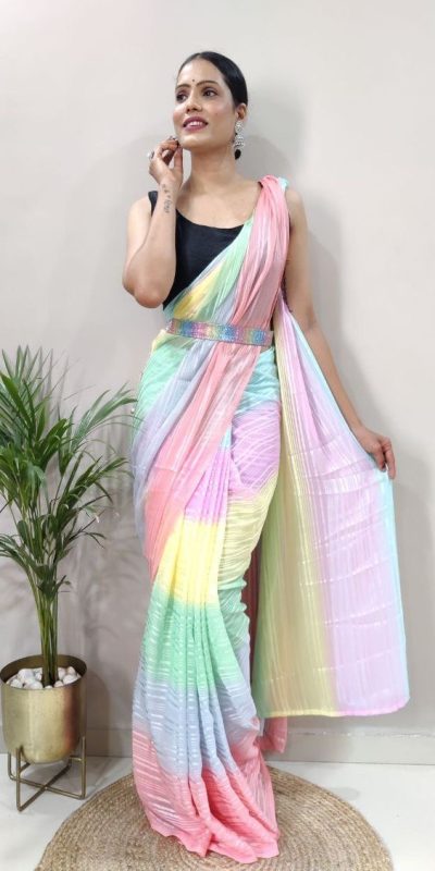 MS 441 Rainbow Color Chiffon Zari All Over Rainbow Shade Saree Casual, Party Wear, Wedding, Events, Etc. Expected Delivery 4-6 Working Days 1499/-