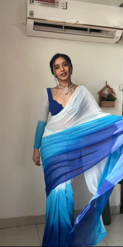 SC 230 White And Blue Color Soft Georgette Silk Ready To Wear Saree Casual, Wedding, Festive, Events . Expected Delivery 4-6 Working Days @1549/- only