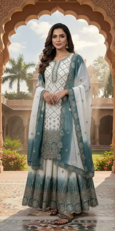 Top Fabric :Heavy Dual Tone Peding Star Georgette With Heavy Embroidery 5 mm Sequence Work With Sleeves