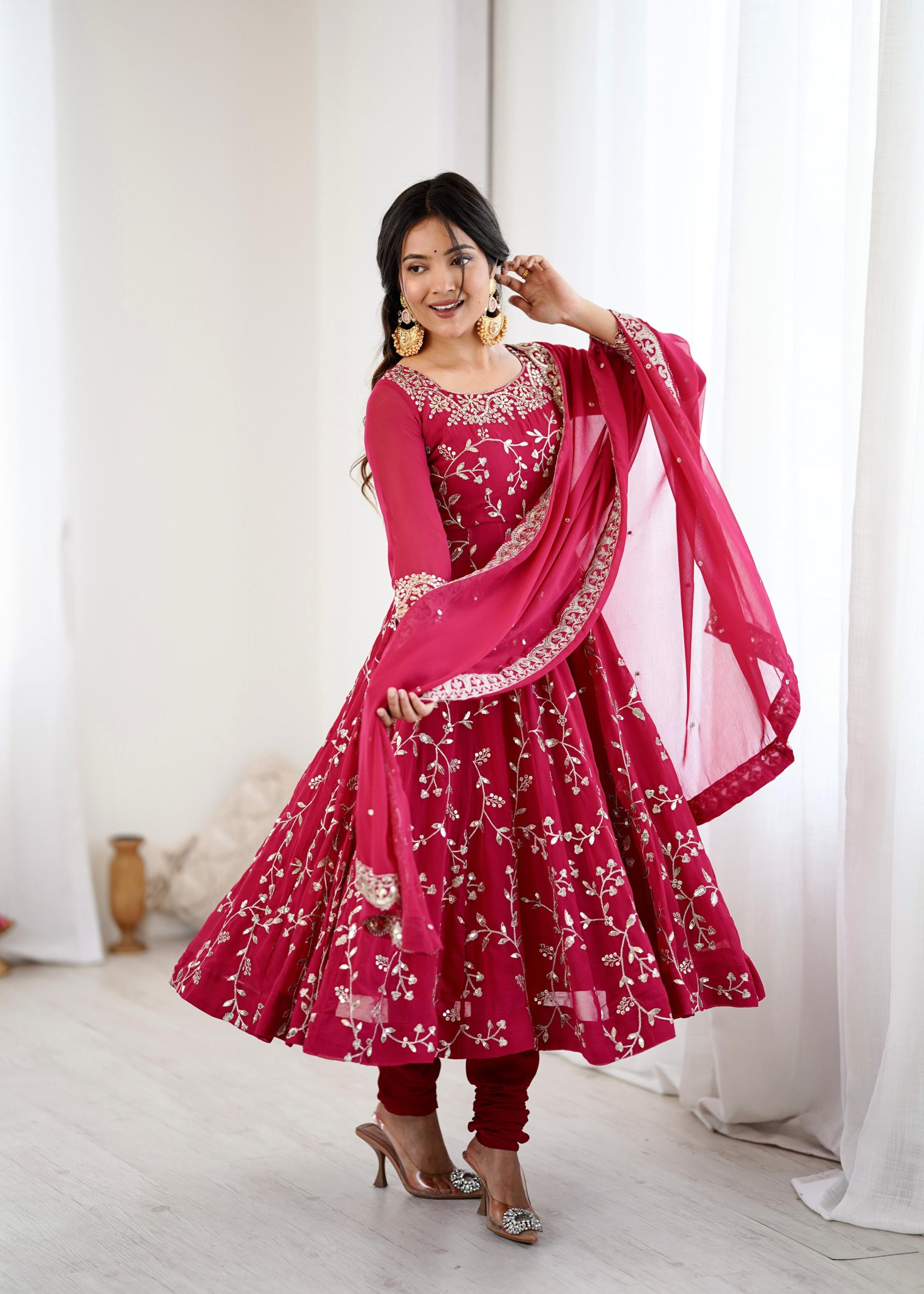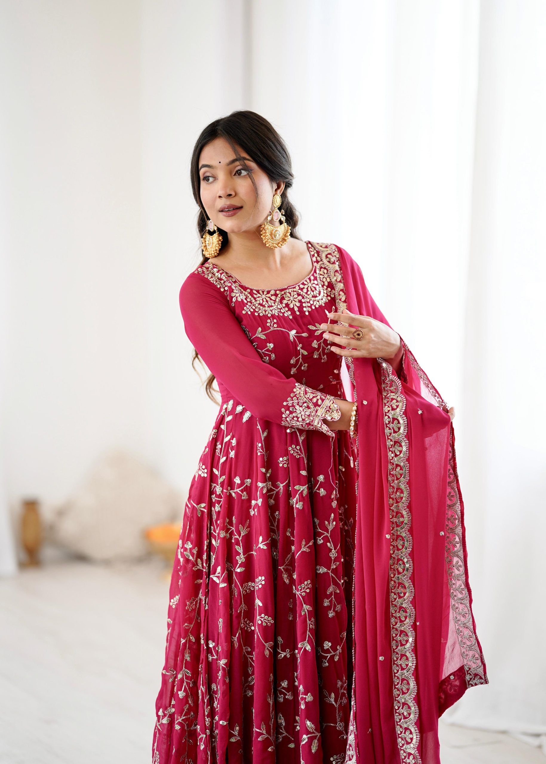 SRK 5299 Pink Faux Georgette With Sequence Work Perfect for Wedding, Party, Lohri, Temple Visit, Ganesh Chaturthi Festive, Events, 4-6 Working Days At 2149 | Bollywood Gowns, Creative Gowns, Designer Gowns, Embroidered Gowns, Gowns, Party Wear Gowns