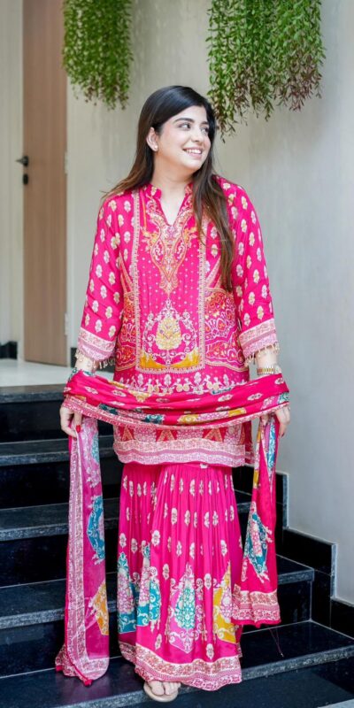 Pink French Crape Mirror Work Salwar Suit