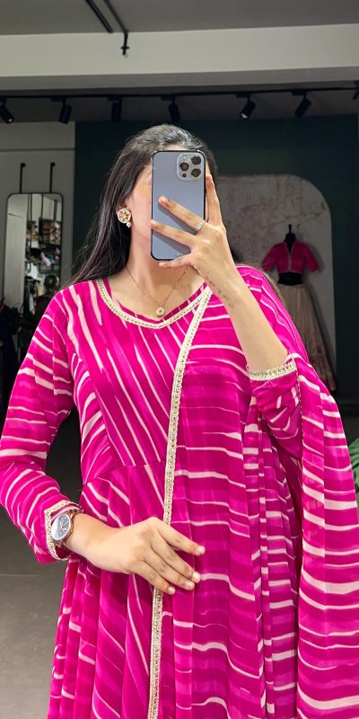 Pink Georgette Leheriya Gown