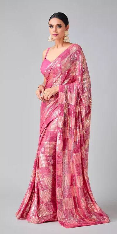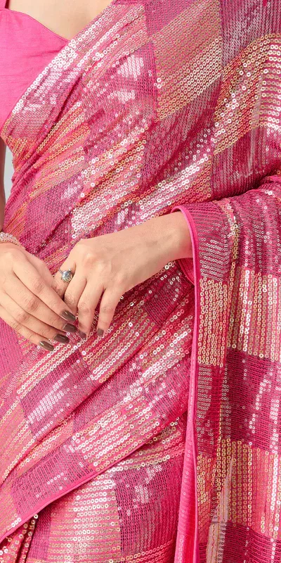 Pink Georgette Sequins Work Saree