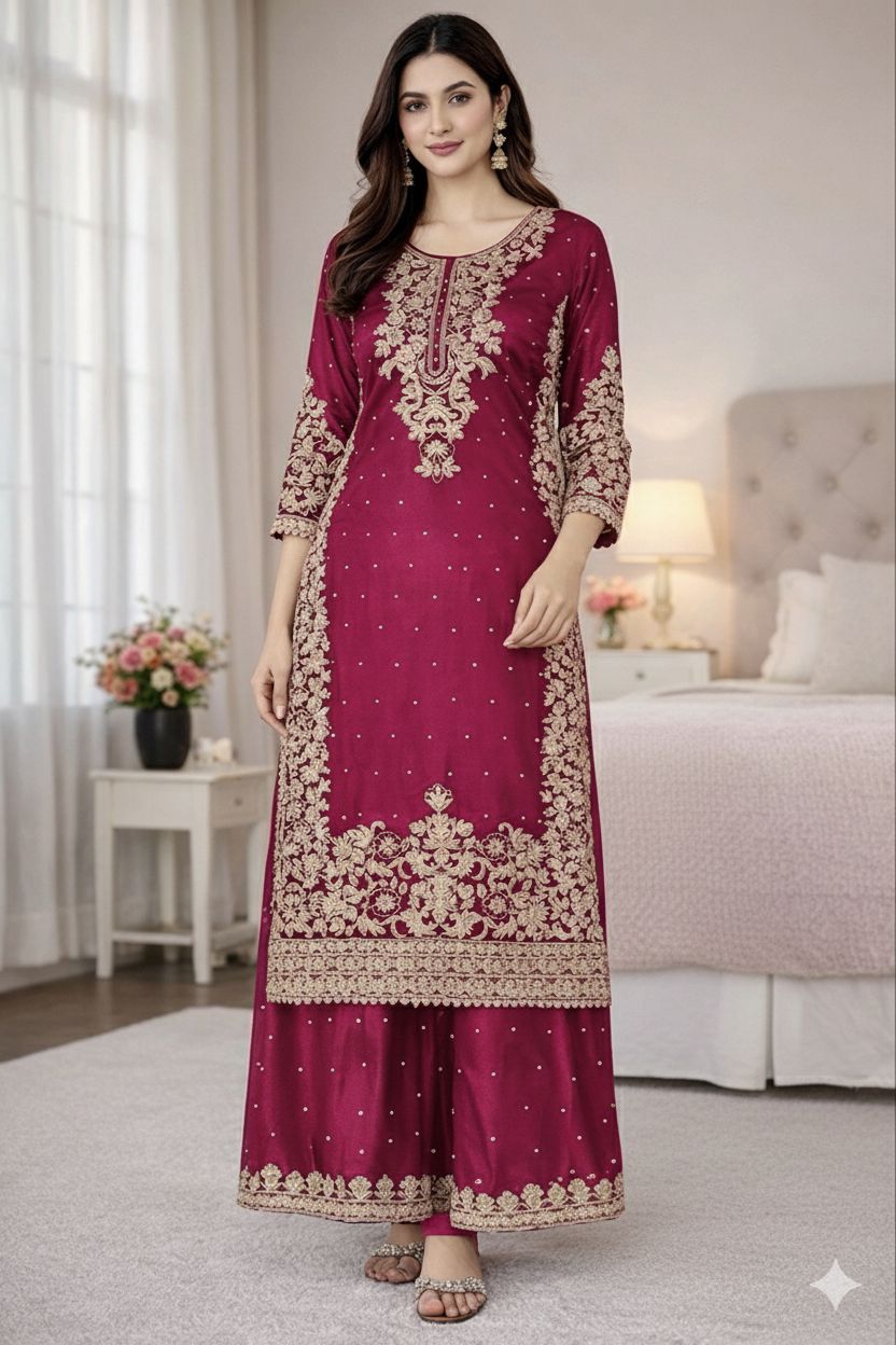 Aglow Pink Color Japan Satin Thread Sequence Salwar Suit