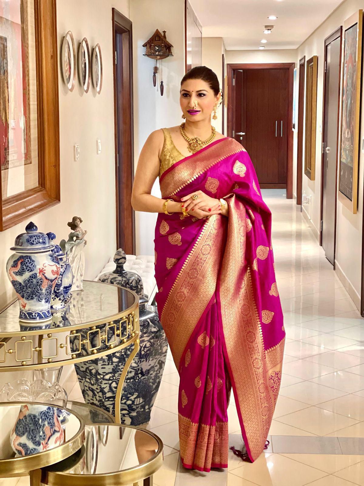 1. Silk blend Indian saree ka weight thoda zyada hai; long events me shoulders pe mehsoos hota, chote occasions me time pass ke liye theek.
