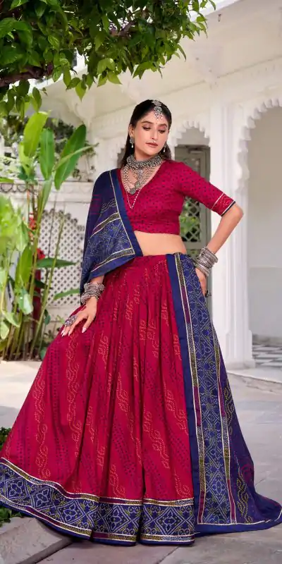 Lehenga Work : Bandhej Print With Gotta Patti Lace Touch Up