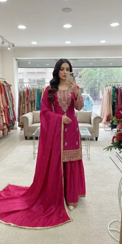 Pink Zimmy Silk Lace Embroidery Work Salwar Suit