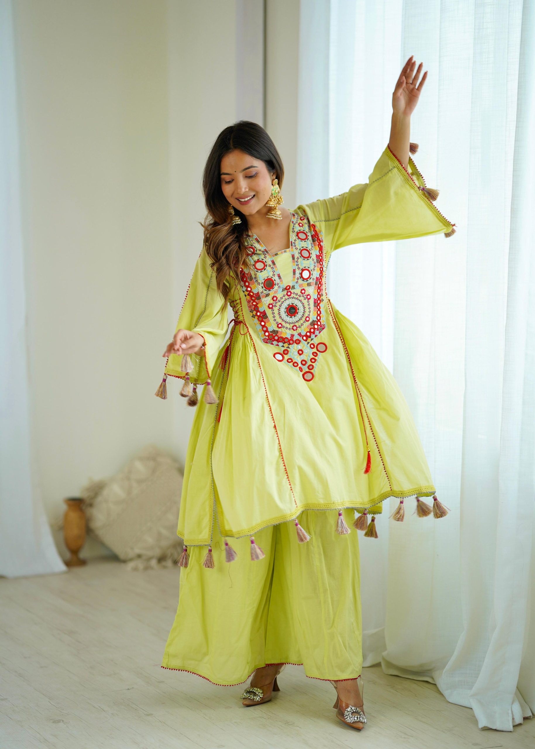 Pure Khadi Cotton With Embroidery Sequence Work With Real Mirror Work