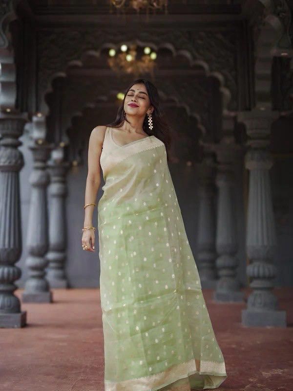 Pista Soft Lilan Slab Weaving Work Saree