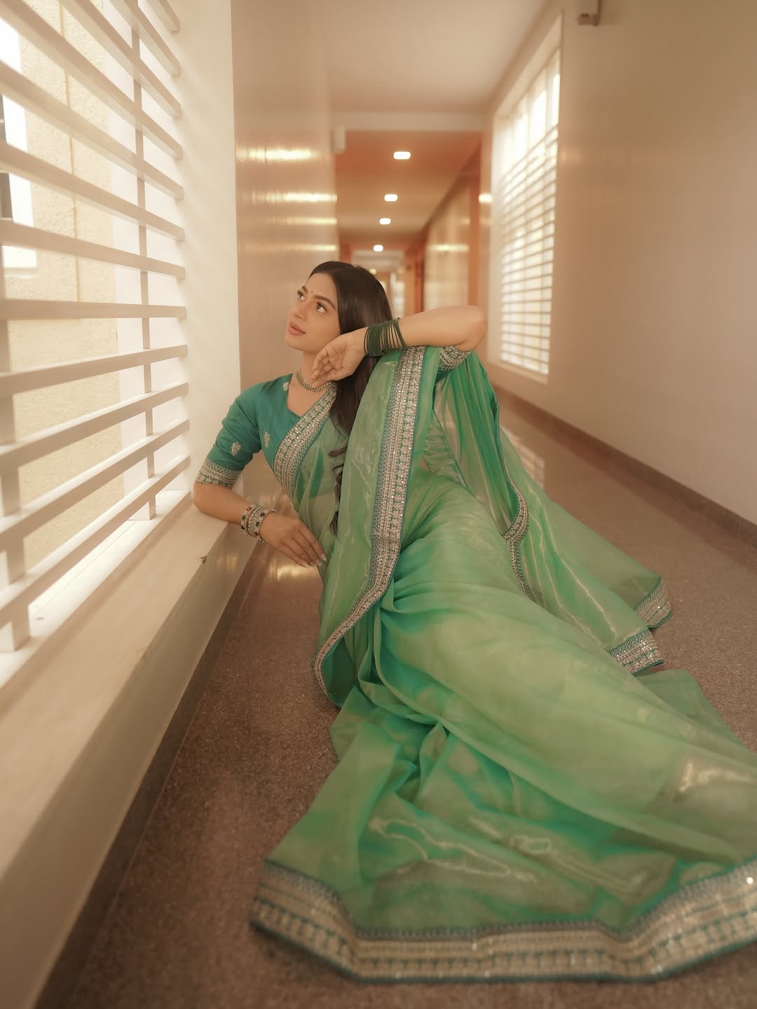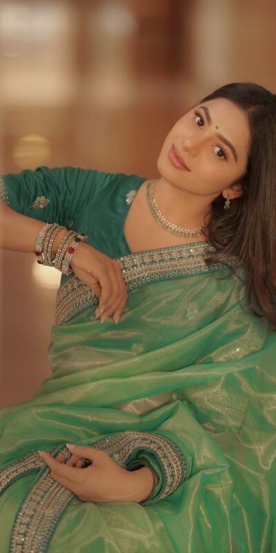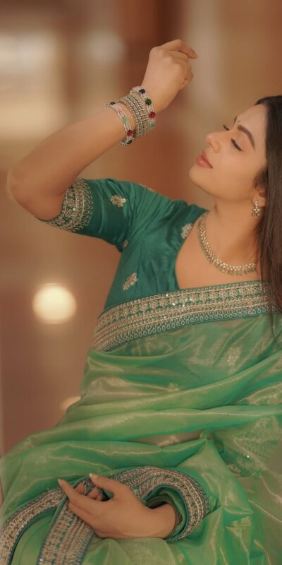 Pista Twill Net Sequins Embroidery Work Saree