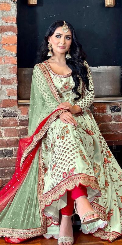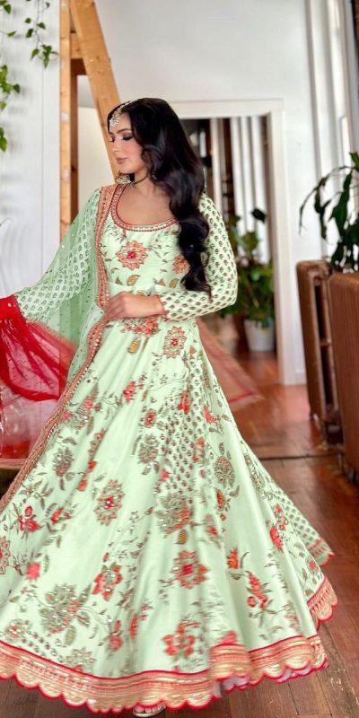 SR 1620 Green color Georgette Embroidery Diamond Anarkali Suit Casual, Wedding, Party, Festive, Events . Expected Delivery  4-6 Working Days @2099/-