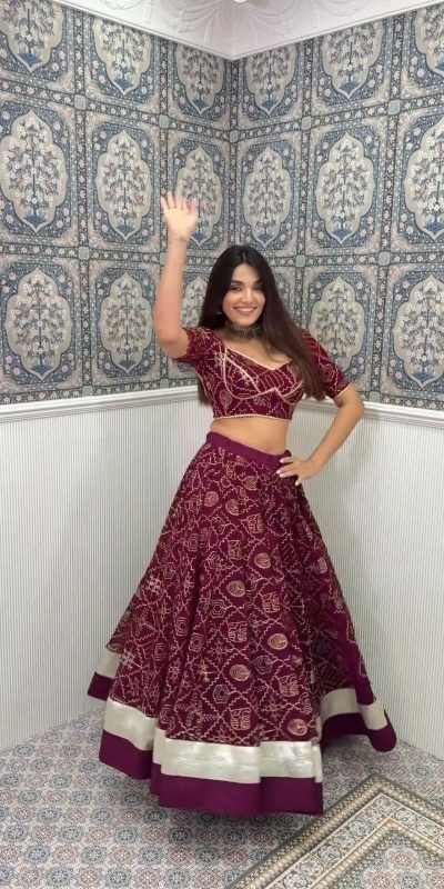 LG 613 Maroon Color Rayon Printed Silk Work Lehenga Choli Festive Party Wedding, Events etc. Delivery 4-6 Working Days @1999/-