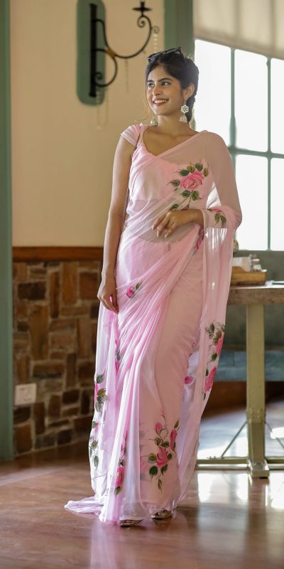 SC 405 Pink Color Soft Georgette Silk All Over Saree Casual, Wedding, Festive, Events . Expected Delivery  4-6 Working Days @1599/- only