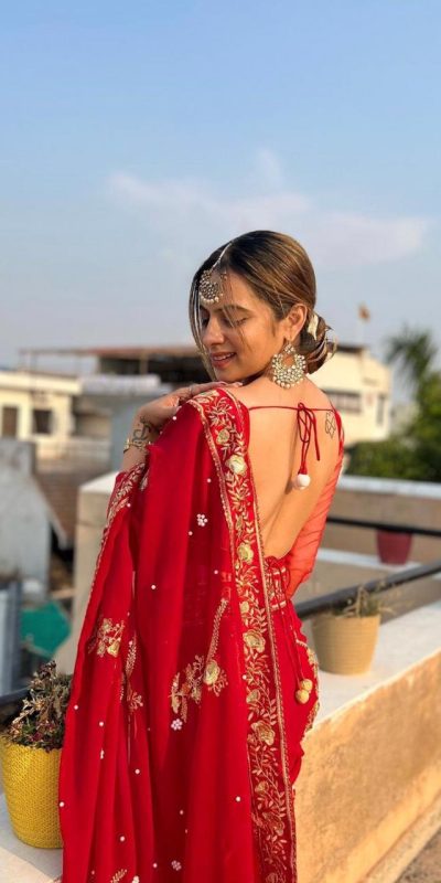 BT 1188 Red Color Georgette Embroidery Zari And Sequence With Moti Work Saree Casual, Wedding, Festive, Events . Expected Delivery 4-6 Working Days @1999/- only
