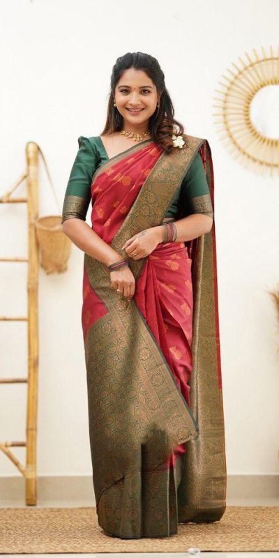 KP 4061 Red Color Soft Lichi Silk Jacquard On All Over Saree Casual, Party Wear, Wedding, Events Etc. Expected Delivery 4-6 Working Days @1449/-