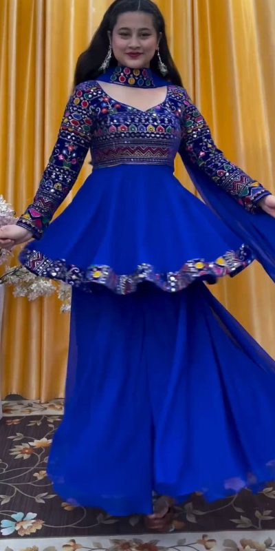 Pretty Royal Blue Color Georgette Embroidery Work Sharara Suit