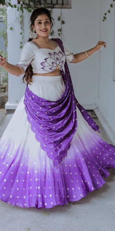 Purple Chinon Digital Print Lehenga Choli