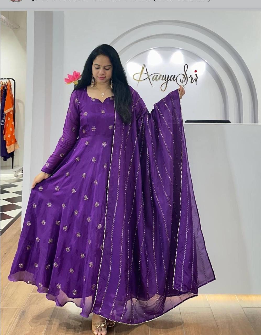 Purple Chinon Embroidery Work Gown