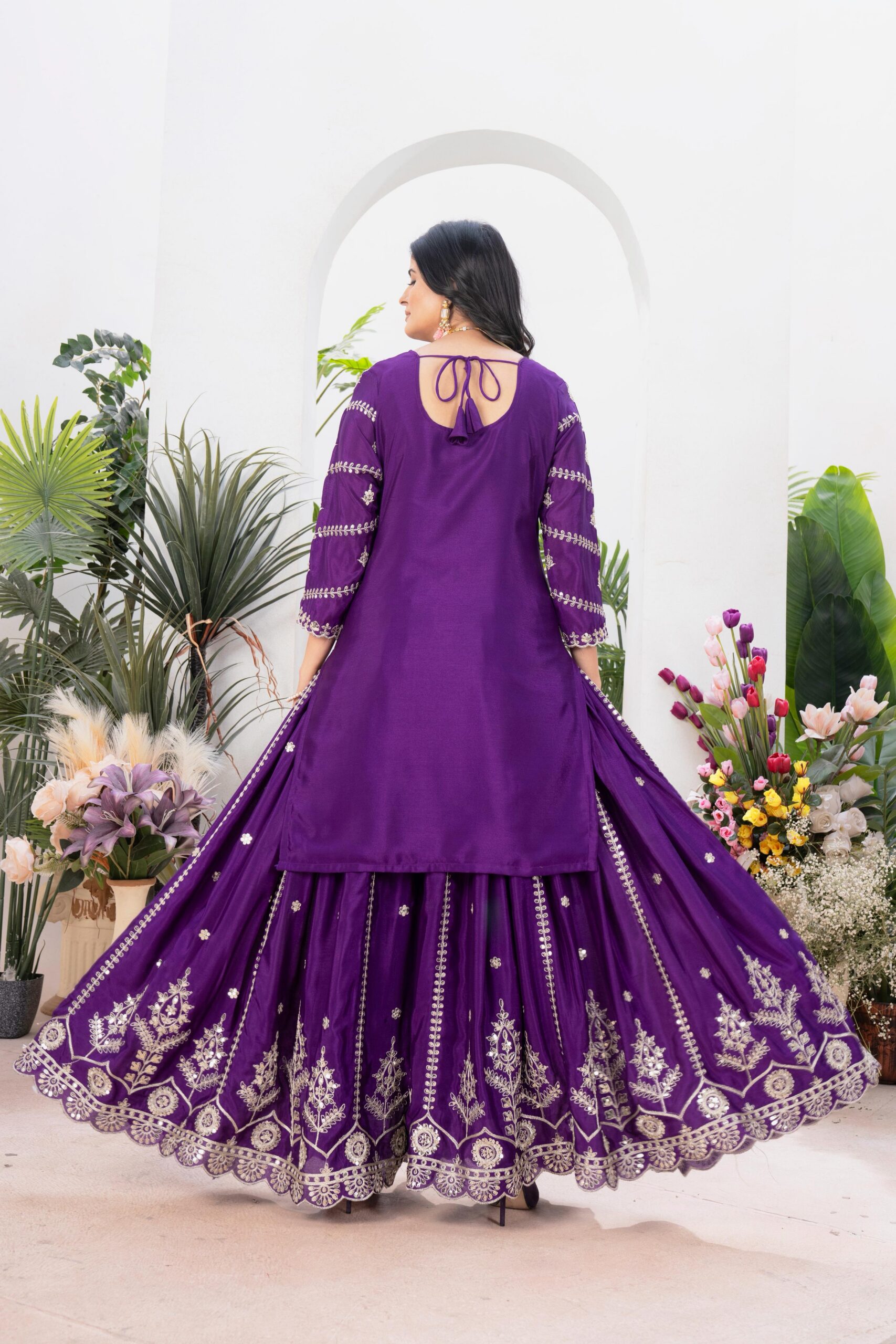 ND 5033 Dark Purple Chinon Silk Salwar Suit with Embroidery Work & Lace Work. Affordable Price ₹2149. Delivery 4-6 Working Days. Shop now. | Casual Suits, Jump Suits, Creative suits, Designer Suits, Palazzo Suits, Party Wear Suits, Patiala Suits, Salwar suit, Straight Suits