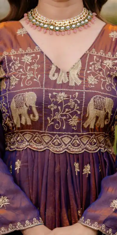 Purple Fendy Satin Embroidery Work Gown